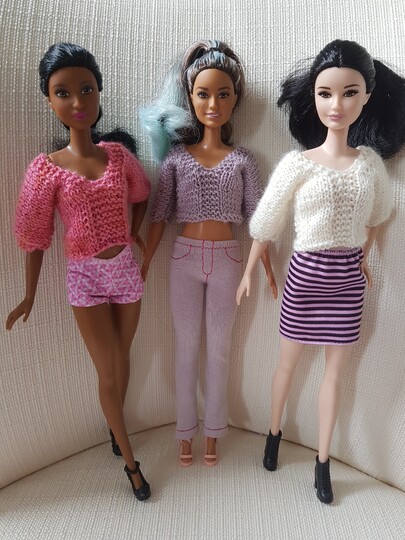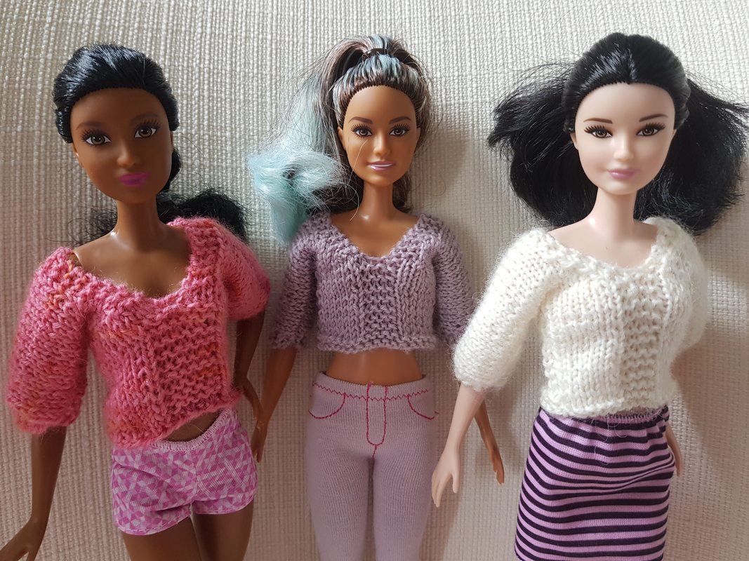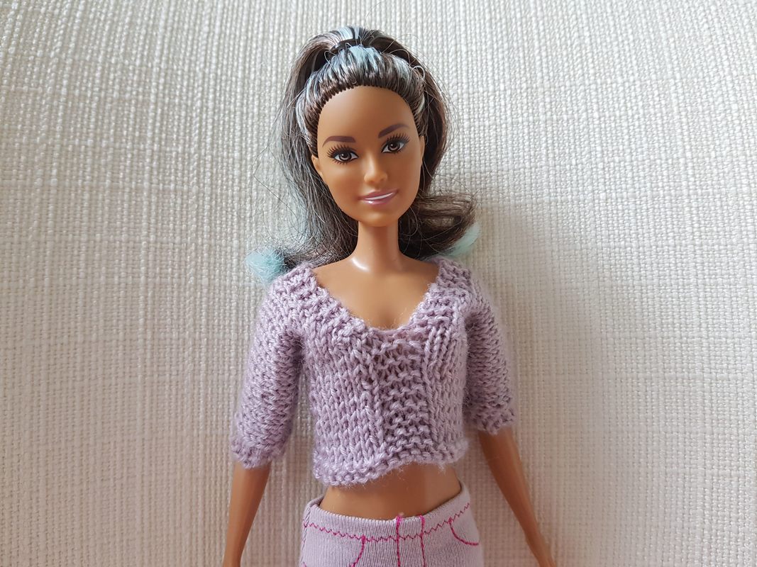 Tolle Strick-Anleitung für einen V-Auschnitt-Pullover für die Modepuppe von Ma..el oder Puppen mit gleichen/ähnlichen Maßen.