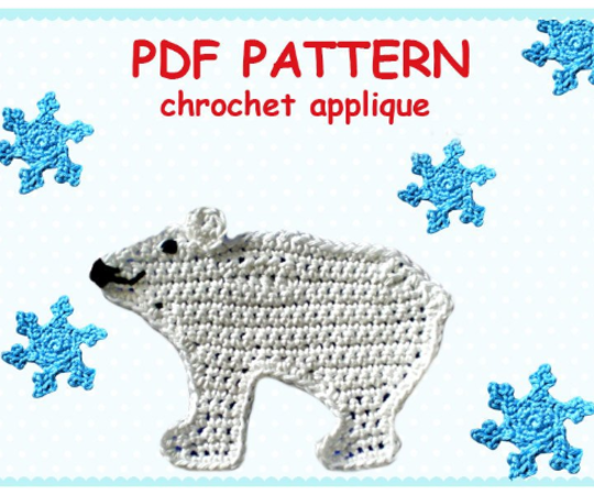 Eine Häkelanleitung für eine Häkelapplikation Eisbär und ein Eiskristall.
