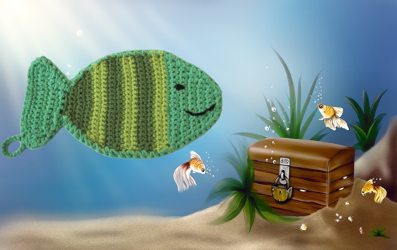 Dieser süße Fisch verzaubert einfach jeden. Er ist schnell gehäkelt und dient als Topflappen. Da Baumwolle eingesetzt wird, kann der Fisch aber ebenso als Waschlappen für die lieben Kleinen verwendet werden.