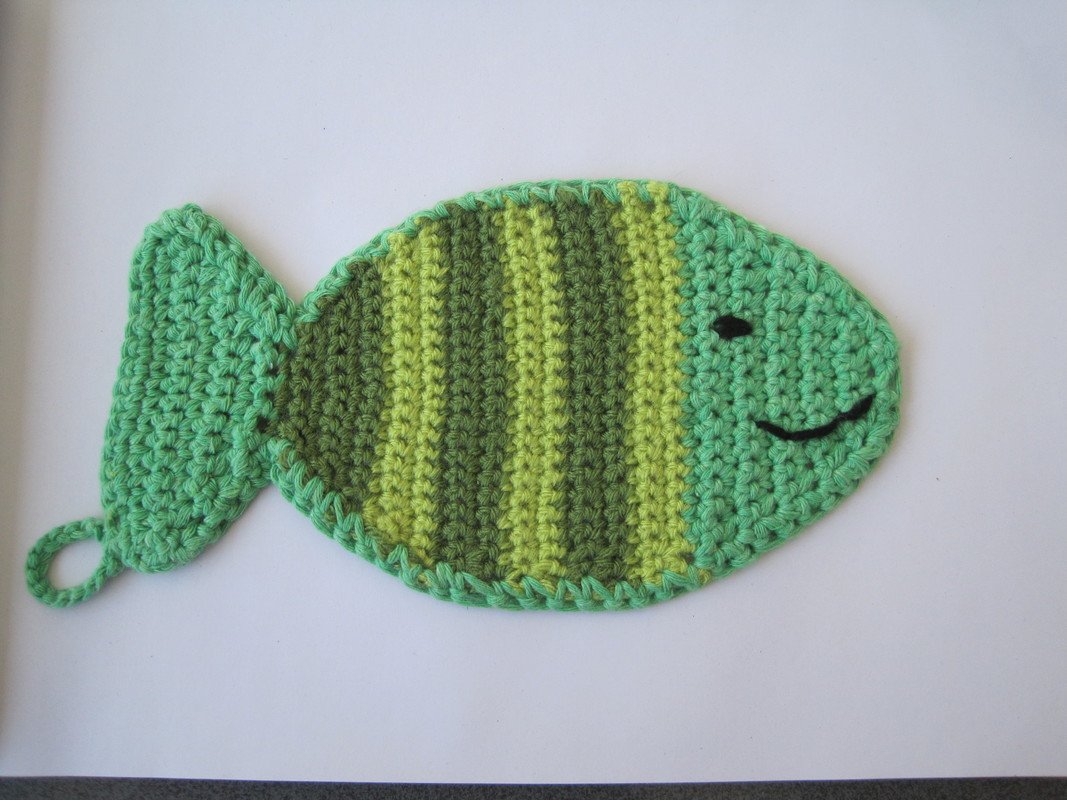 Nun wünsche ich ganz viel Freude mit diesem Fisch als Topflappen oder Waschlappen. So oder so ist er in jedem Zimmer ein Blickfang.