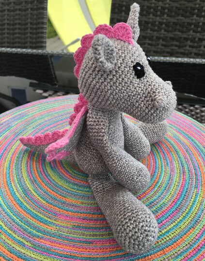 Diesmal gibts diesen süßen Drachen für Euch zum Nachhäkeln.