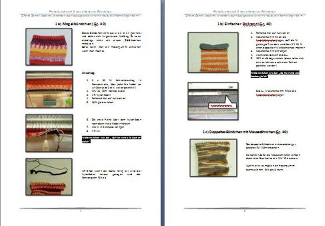 Es werden also 3 verschiedene Bündchen im Detail gezeigt und als Anhang bekommen Sie noch eine Kurzanleitung. Die gesamte Anleitung umfaßt 12 DIN A 4 Seiten und wird als PDF verschickt.
