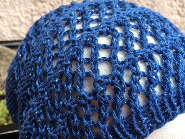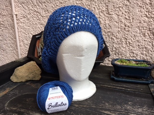 Aus 50g CottonCash oder 50g Brillantina(Mondial) kann man so eine schöne Mütze für den Sommer stricken. Da mir die Mütze so viel Spaß gemacht hat, habe ich sie mit zwei unterschiedlichen Garnen gestrickt. Einmal sind die Teile zwischen dem Netzmuster glatt rechts (Baumwolle mit Cashmere) und einmal glatt links. ( Mondioal Brillantina) Die Mütze ist auch sehr schön für kleine Mädchen, dafür Schlagen Sie allerdings weniger M an
