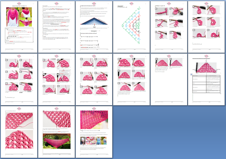Häkel die ersten 5 Reihen mit mir im Fototutorial zusammen oder nach Häkelschrift und schon ist das Muster in deinem Kopf! :-) Da musst du nichts mehr mitschleppen außer Garn und Nadel und wo immer ein paar Minütchen abfallen, wird das Tuch wachsen...
