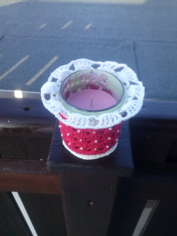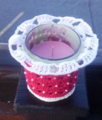 Verkauft wird eine Häkelanleitung für Duftlicht- oder Teelicht-Glas.