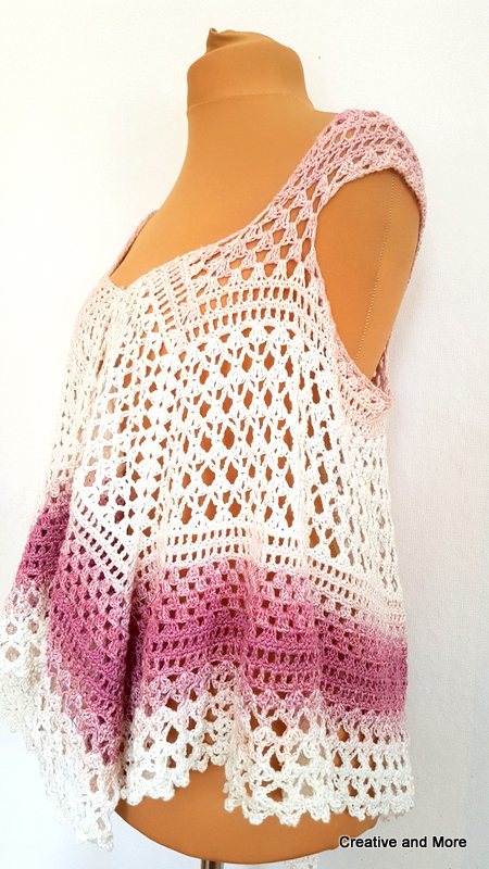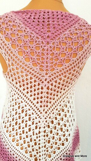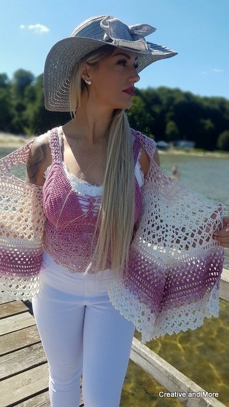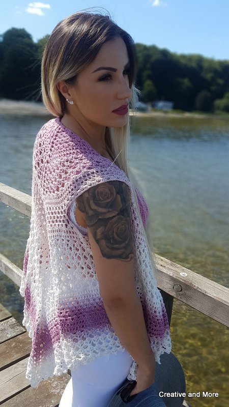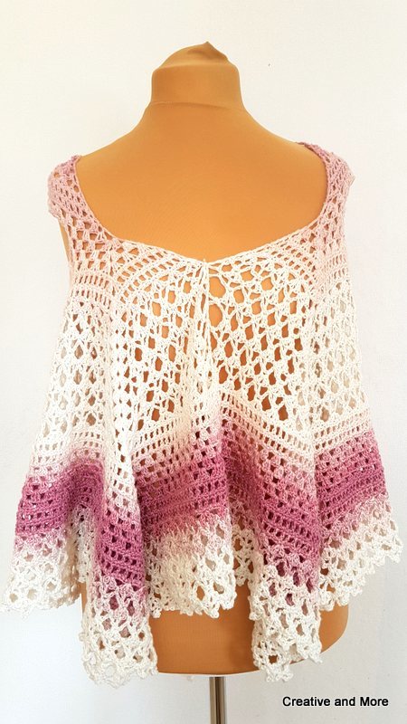 Achte immer auf die kleinen Tipps und Hinweise im schriftlichen Teil, da diese nicht in der Häkelschrift zu sehen sind. Die Häkelschrift dient lediglich dazu, die Muster zu erklären, wichtige Informationen bzgl. der Armausschnitte und Ecken/Spitze befinden sich NUR im schriftlichen Teil.