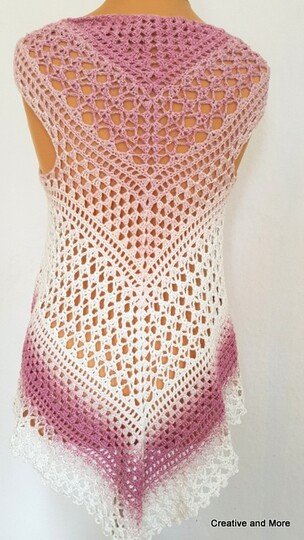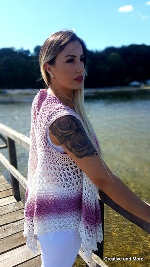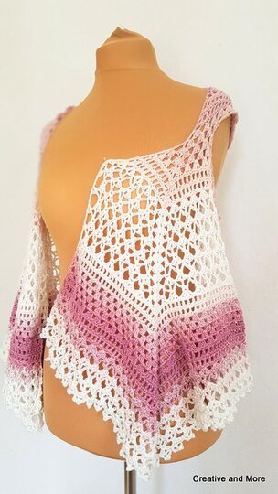 Das Häkeltuch kann so groß/klein gehäkelt werden, wie man es gerne möchte. Du kannst es als klassisches Tuch häkeln und tragen oder aber auch als Tuchweste, indem du zwei Armausschnitte mithilfe von Luftmaschen häkelst sowie zwei weitere Ecken einfügst, damit es einer richtigen Weste ähnlich sieht.