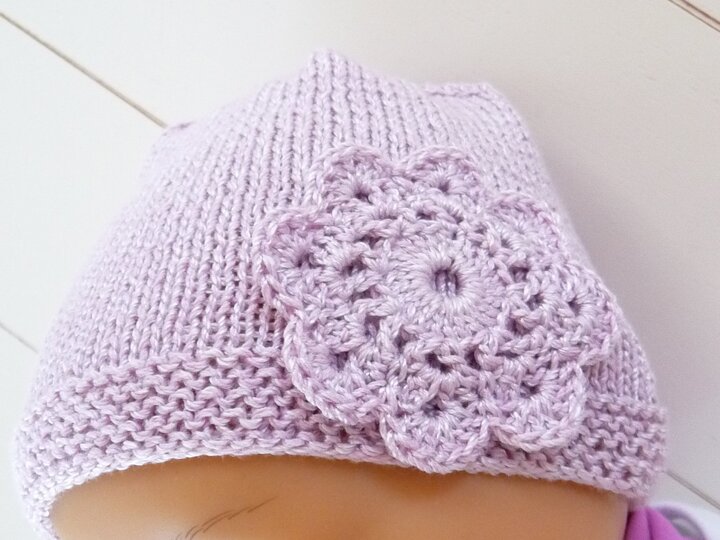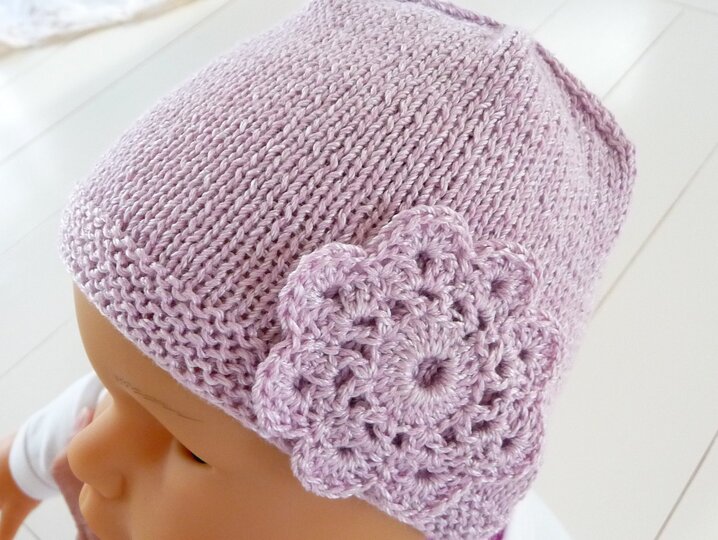 Strickanleitung für Babymütze - Mütze mit Häkelblüte - für Anfänger geeignet - No.16