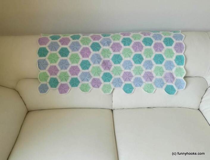 Mit dem von mir verwendeten Material hat die Decke folgende Maße: Länge 95cm, Breite 70 cm
