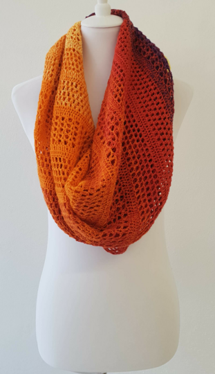 Eleonora, das etwas andere Tuch. Die angesagt Form ist ideal als Loop, Tuch oder Stola tragbar und es ist ein absoluter Hingucker.