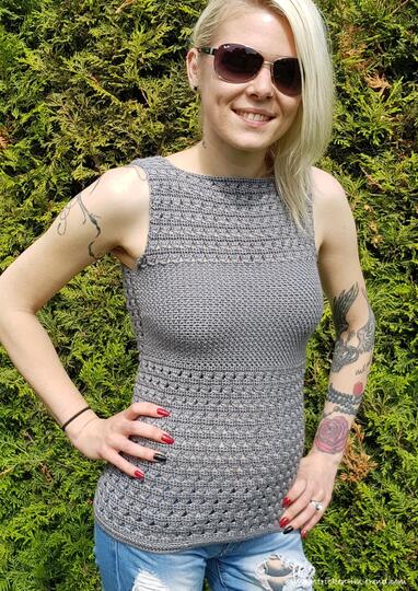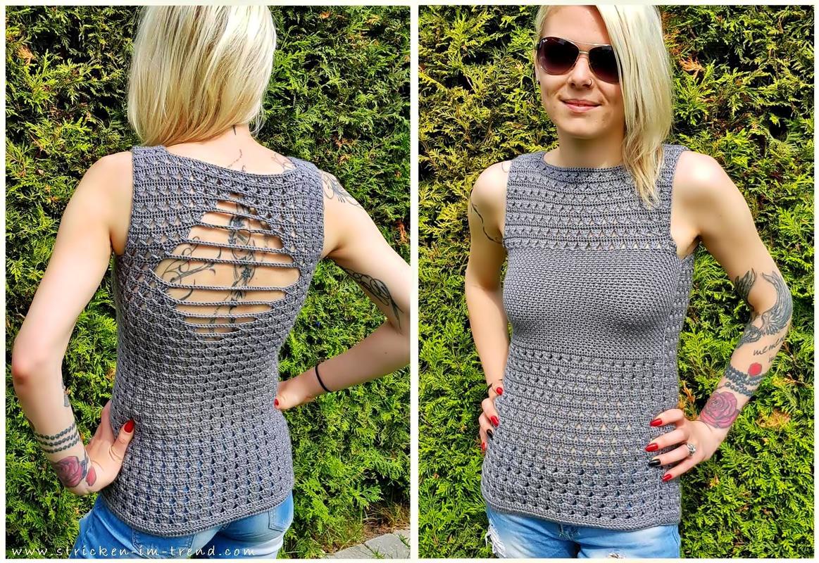 Eine schöne Kombination aus 3 Mustern ergeben ein wunderbares Häkeltop.