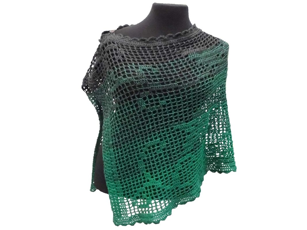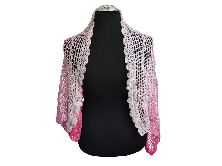 Der Multifunktionsbolero wird in Reihen von UNTEN nach OBEN gehäkelt.