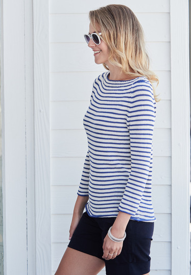 Verbinden Sie Breton-Streifen mit Urlaubsfeeling und Meer? Mit Strandspaziergängen und Segeltörns? Dann gehört dieser geringelte Raglanpulli mit U-Boot-Ausschnitt doch ganz bestimmt zu Ihren Favoriten.