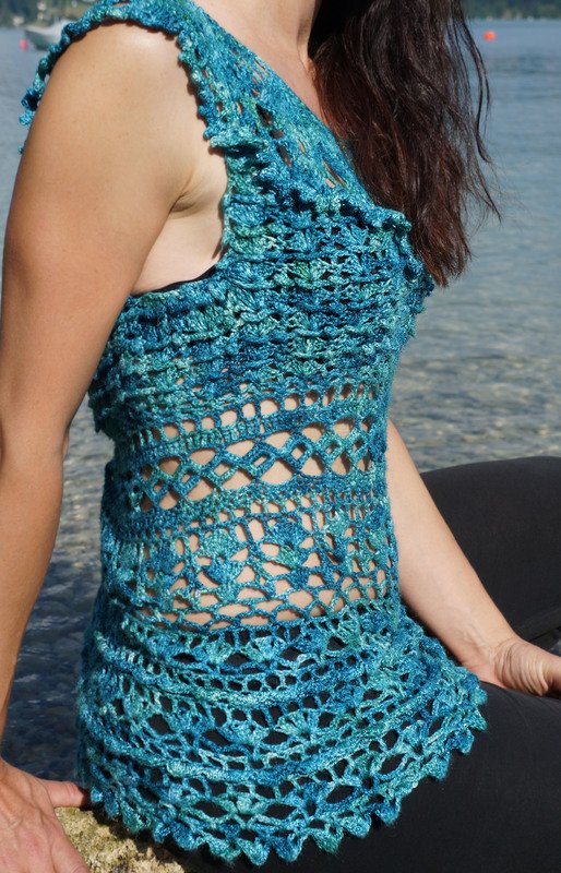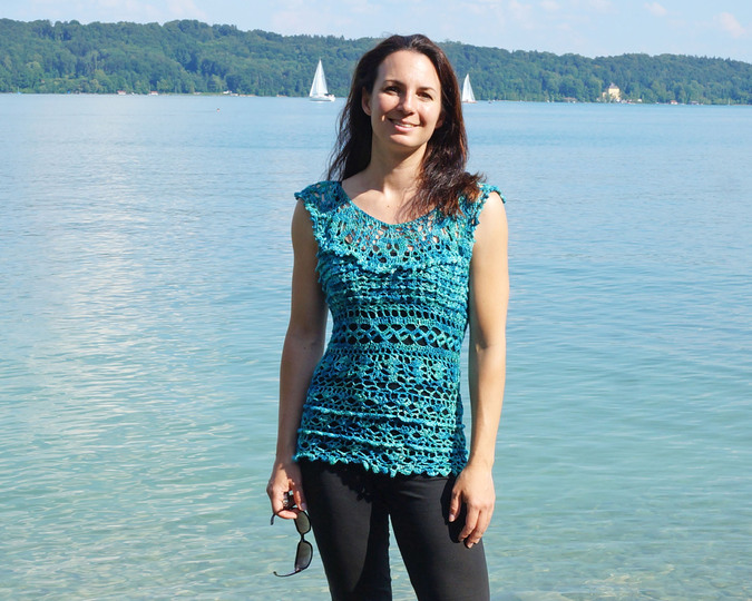 Das Top wurde in Größe S gehäkelt und auf die Größen M und L umgerechnet.