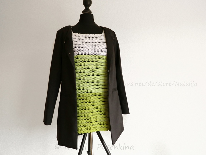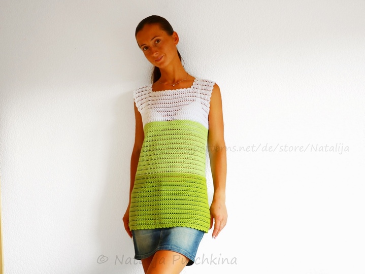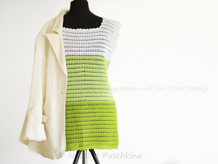 Verkauf der von Dir hergestellten Tunika ist möglich: Du darfst die Artikel, die Du mithilfe meiner Anleitung zum Häkeln von Tunika gefertigt hast, in beliebiger Stückzahl gewerblich verkaufen. Bitte den Hinweis: „Angefertigt nach dem E-Book von Natalija Puschkina https://www.crazypatterns.net/de/store/Natalija“ dazusetzen.