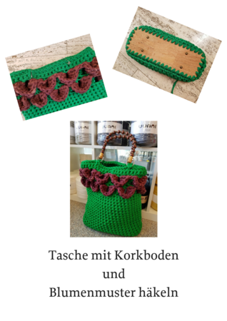 gehäkelte Tasche mit Kork-Boden und Blumenmuster