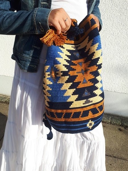 Hier habe ich wieder ein absolut einzigartiges Produkt für den modebewussten Liebhaber von Handarbeit. Man nennt diesen Stil Mochila Wayúlia.