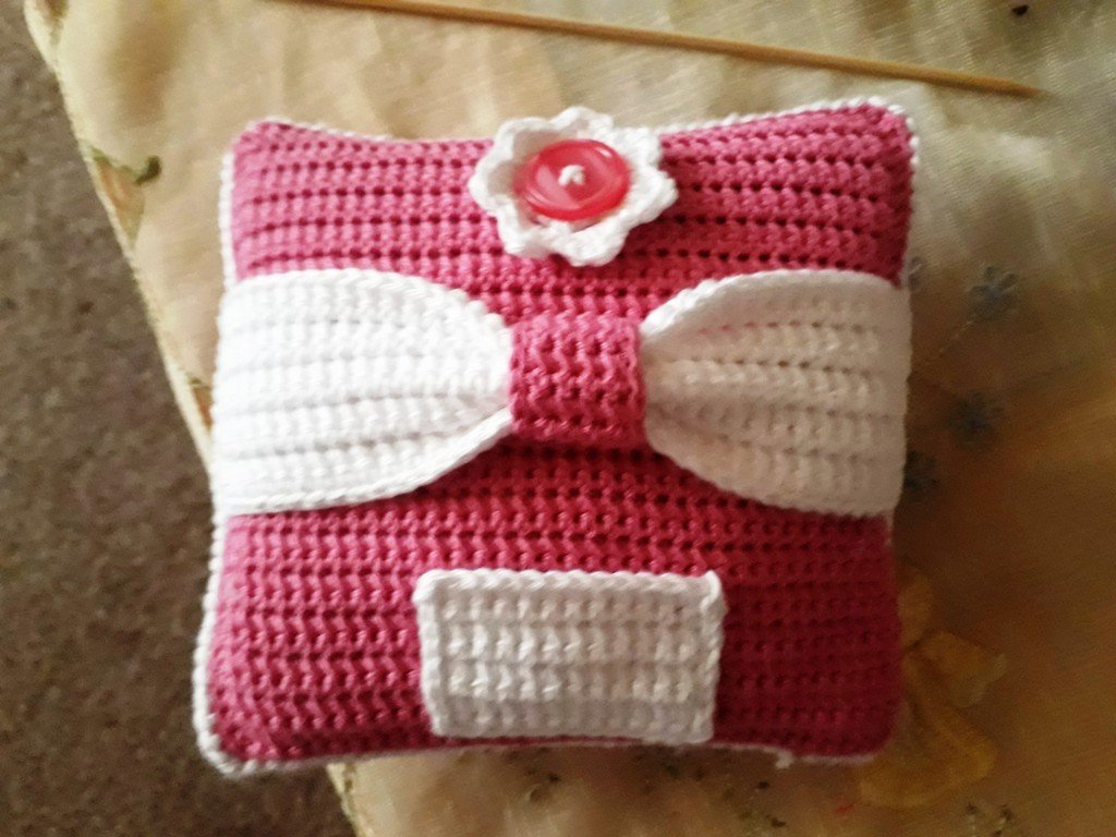 In dieser Anleitung führe ich Schritt-für-Schritt von Häkelnadel und Faden zum fertigen Kissen. Es eignet sich für jeden feierlichen Anlass, bei welchem man ein ganz besonderes Geldgeschenk überreichen möchte. Ich entwarf es für die Tochter einer Freundin zur Lebenswende. Sie freute sich sehr darüber.