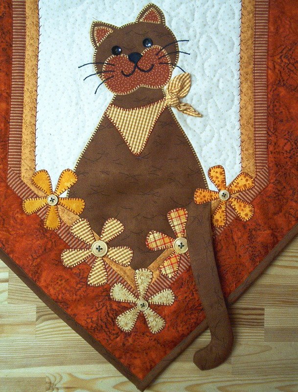 Anleitung mit genauen Materialangaben und originalgroßer Applikationsvorlage eines ca. 40x 105 cm großen Tischläufers inPatchwork-, Applikations- und Quilttechnik.