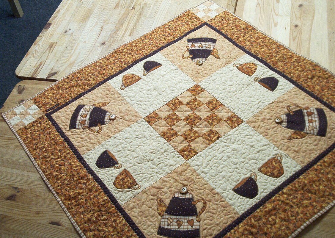 Anleitung mit genauen Materialangaben und originalgroßer Applikationsvorlage einer ca. 90 x 90 cm großen Tischdecke in Patchwork-, Applikations- und Quilttechnik.