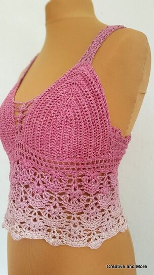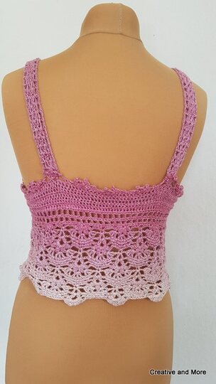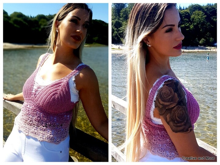 Dieses schöne Sommertop lässt sich super zu Röcken und Hosen tragen, je nachdem wie oft du den Mustersatz wiederholst, kannst du es von einem kurzen Top (wie auf den Bildern zu einer High Waiste Hose) bis zu einem tollen Strandkleid verwandeln.