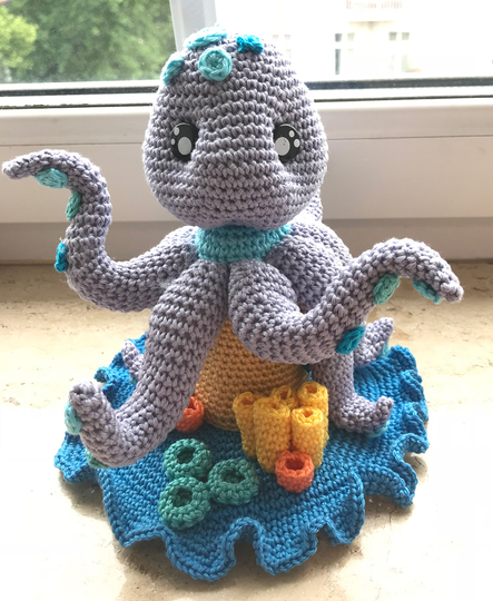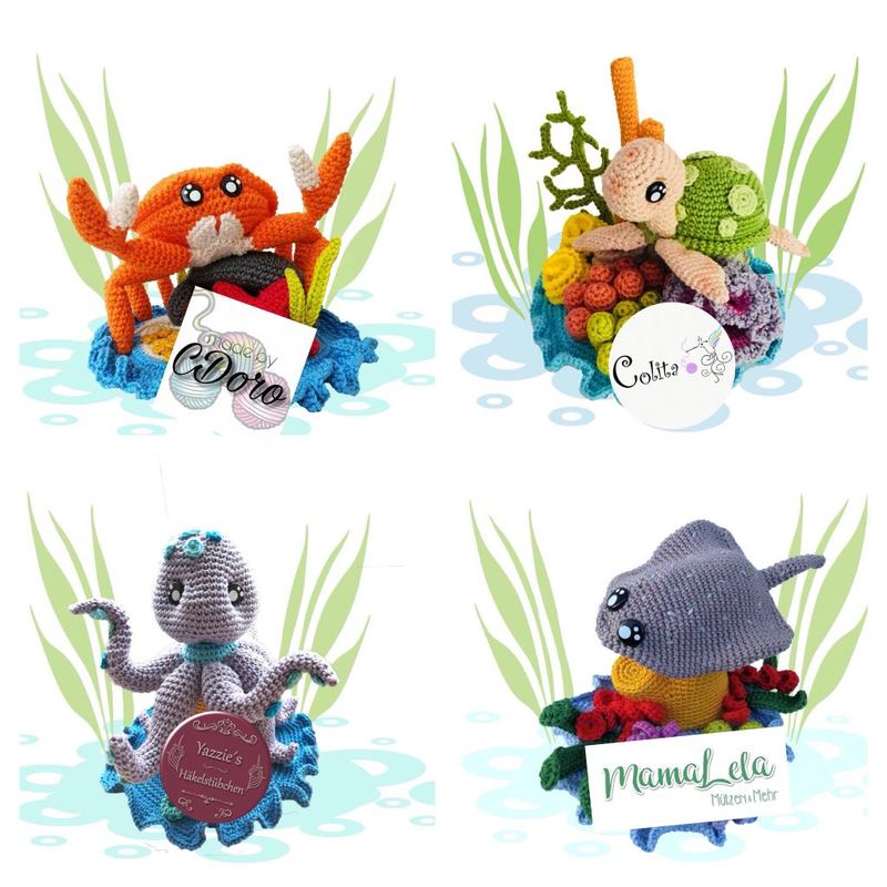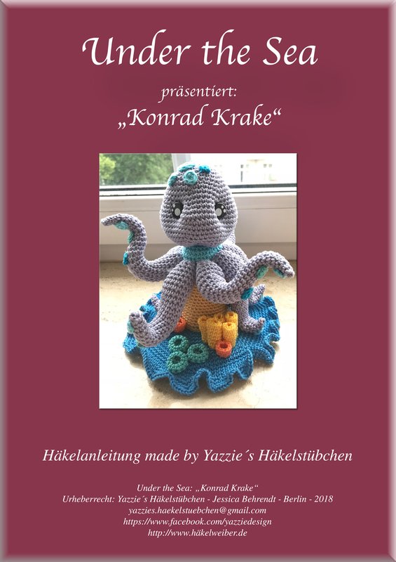 Mit dieser Häkelanleitung könnt Ihr Euren eigenen Konrad Kraken häkeln. Konrad ist ein Projekt aus einem Gemeinschaftscal von 4 Designern in der Facebookgruppe „Häkelspaß mit den Häkelweibern“. Bei dem CAL sind 4 voneinander unabhängige Unterwasserwelten entstanden. Ebenfalls erschienen sind Richard Rochen, Karl Krabbe und Sofia Schildkröte. Diese Anleitungen sind in den Shops der jeweiligen Designerinnen erhältlich.