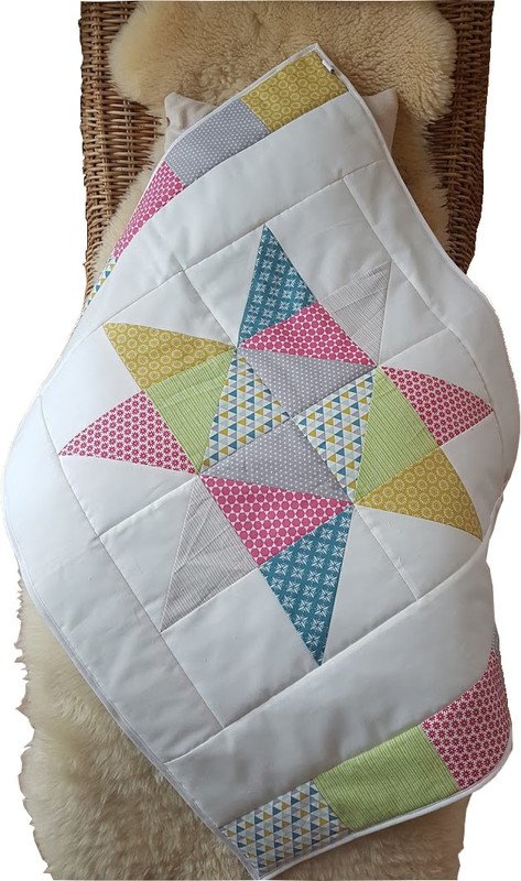 Mit dieser Anleitung für eine Baby-Kuscheldecke gelingt auch Anfängern das Nähen schöner Sterne mit aufeinander passenden Ecken ganz leicht. Durch die einfache Sew-Cut-Sew-Technik ist der Stern schnell geschnitten und genäht und kann auch, mehrfach genäht und aneinander gesetzt, zu einer großen Decken kombiniert werden.