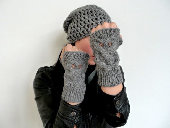Diese fingerlosen Eulen-Handschuhe halten bei kalten Temperaturen kuschelig warm. Die süßen Eulenmotive auf der Oberseite werden perfekt durch die gerippten Bündchen vollendet. Ein Essential das viele Winter zum Einsatz kommt. Handschuhgröße 1 für 6,5 – 7,5 und Handschuhgröße 2 für 7,5 – 8,5.