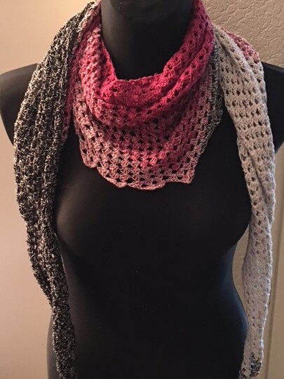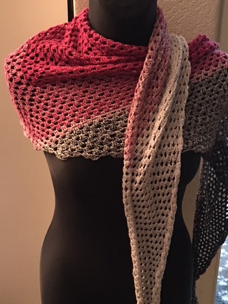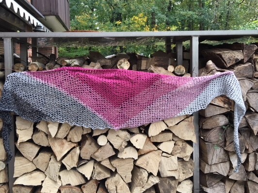 Das Tuch wurde auf Basis des Half Grannys gehäkelt, jedoch so abgewandelt, dass es nicht so tief, dafür aber schön breit wird.