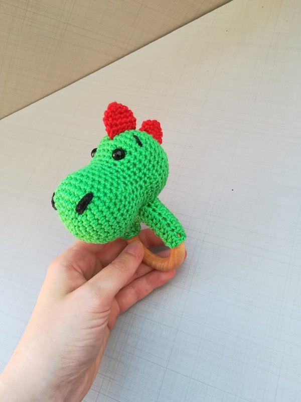 Entdecke die süße Dino Rassel Häkelanleitung, die es dir ermöglicht, deine eigene einzigartige Rassel zu kreieren.