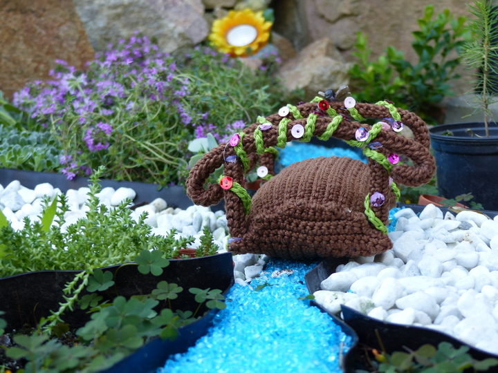Willst auch du dir eine kleine Oase der Feen in den Garten stellen? Dann fang noch heute an, es ist ganz einfach und die kleinen Teile können prima nebenbei gehäkelt werden.