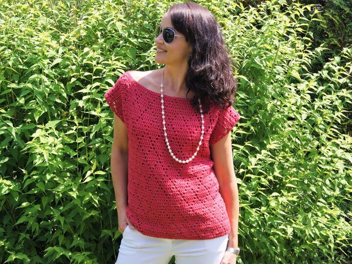 Mit Hilfe dieser Anleitung kannst Du das Top in jede Größe häkeln. Die Anleitung ist als Beispiel für die Größe 38 geschrieben, aber auch mit Tipps wie du sie anderen Größen anpassen kannst.