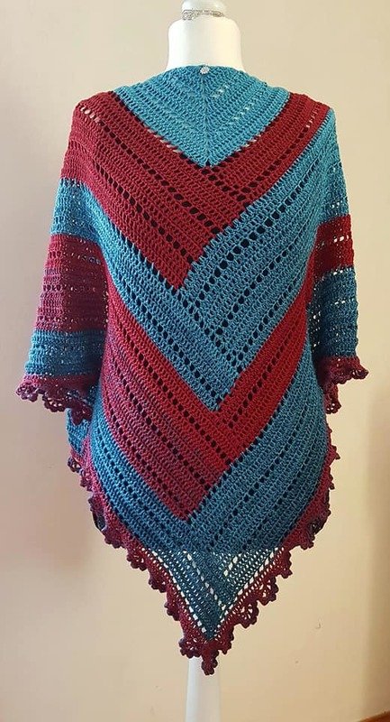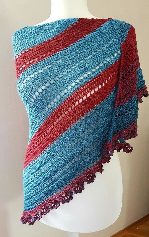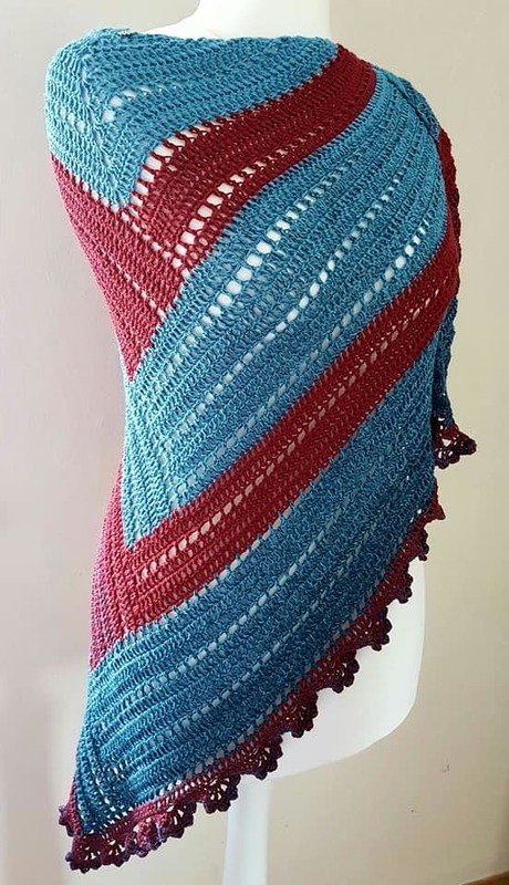 Gearbeitet wurde das Tuch mit einem Farbverlaufsbobbel von Christas Herzbobbel, LL 1000, NS 4.