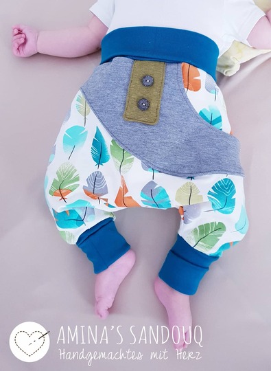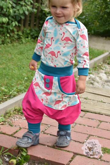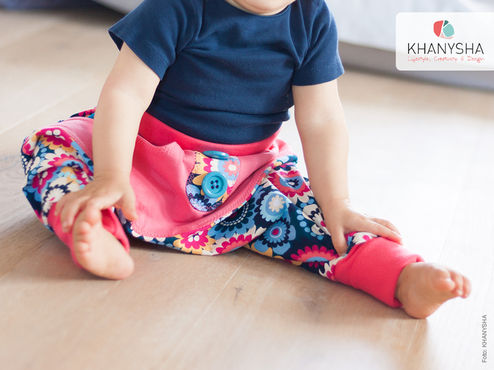 Bequem und stylisch? Mit der lässigen Pumphose Hanna bekommst du beides – genug Platz für Windelpopos jeder Art und Bewegungsfreiheit für die kleinen Wirbelwinde! Durch die extra langen Bündchen an Bauch und Beinen lässt es sich herrlich herumtollen ohne dass etwas stört – und dabei wächst die Hose sogar 2-3 Größen mit und kann so noch länger getragen werden.