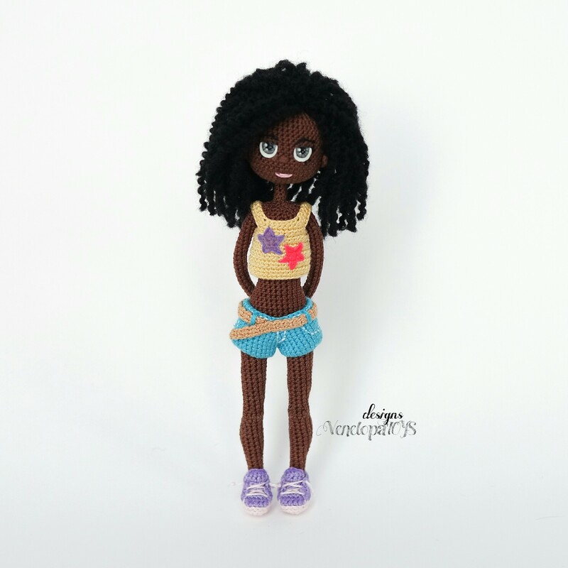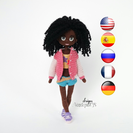 ֍ Beinhaltet Malaugen; Stickerei Augenbrauen, Nase und Mund; Haarbefestigung, eine Beschreibung der Shorts, Jacke, T-Shirt und Schuhe.