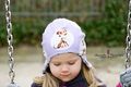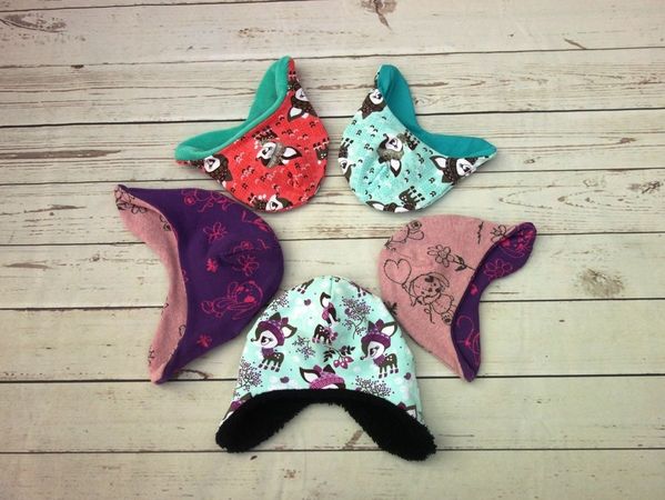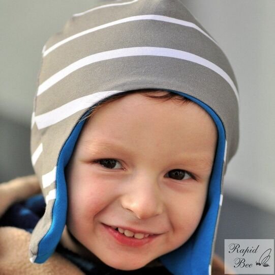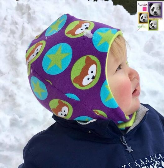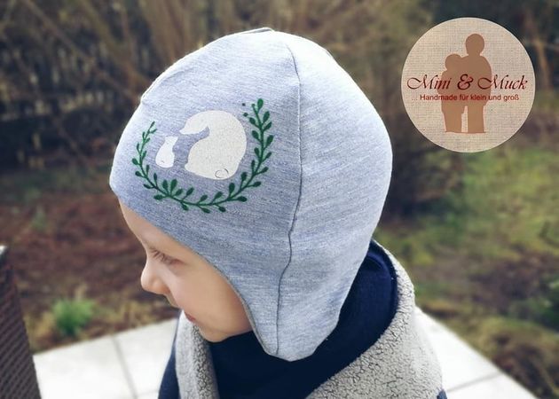 Die Mupi-Mütze hat Ohrenklappen. Das Besondere im Vergleich zu anderen Schnitten: Es gibt keine Naht am Hinterkopf, die vor allem kleine Babys beim Liegen stören, und keine Teilung am Vorderkopf, die oft das Motiv vom Stoff unschön zerschneidet. Die Form mit den Ohrenklappen sorgt dafür, dass die Mütze die Ohren bedeckt und dabei nicht ins Gesicht rutscht. Außerdem liegt die Mütze schön eng am Kopf an, sodass Wind keine Chance hat und man sogar einen Fahrradhelm aufsetzen kann. Die Mupi-Mütze kann als Wendemütze genäht werden. Es steht außerdem eine Variante mit Kinnverschluss zur Verfügung.