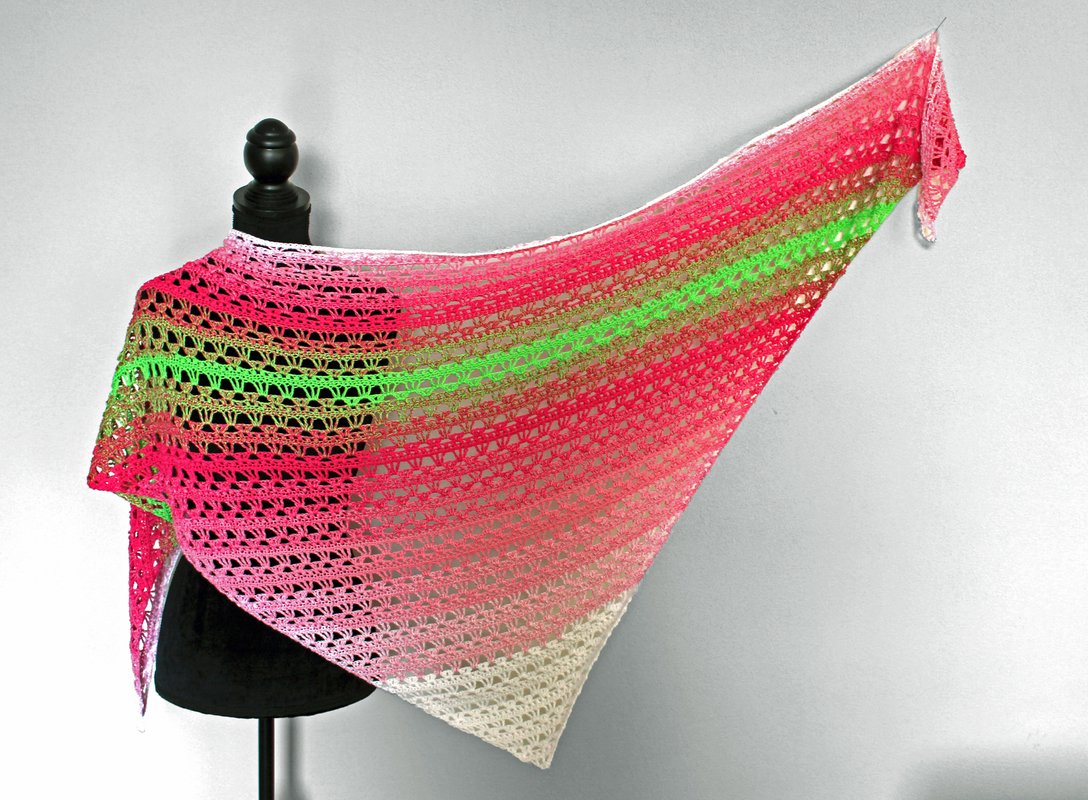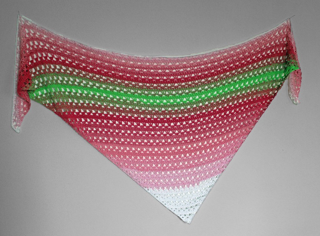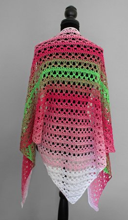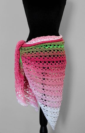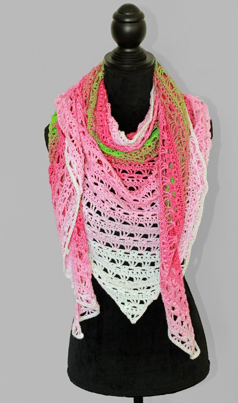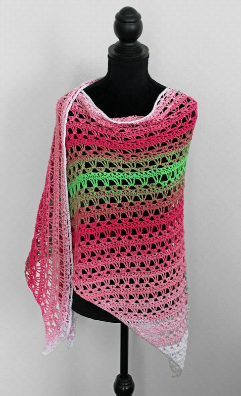 Es handelt sich um ein Tuch, das eher in die Breite geht und so auch für kleinere Frauen ideal geeignet ist.