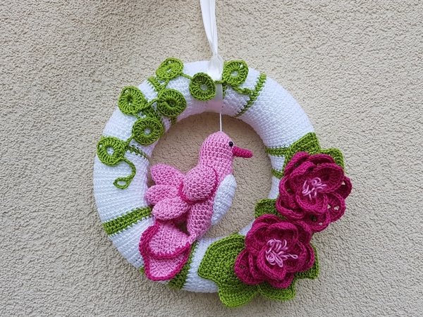 Der Kranz kann als Tür-, Wand- oder als Fensterschmuck dekoriert werden. Auch als Tischdekoration, ohne den Vogel, ist er sehr gut geeignet.