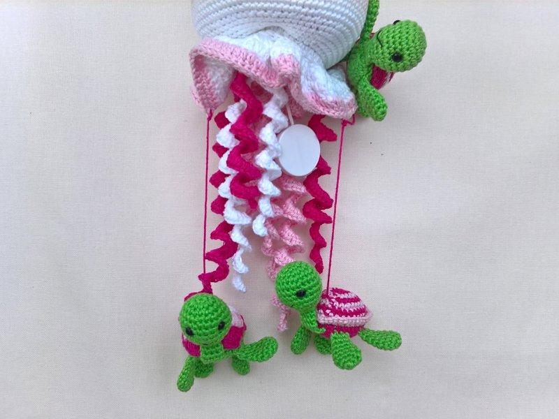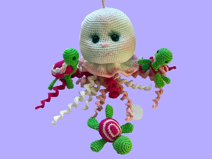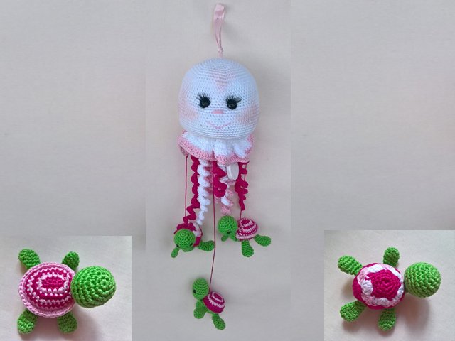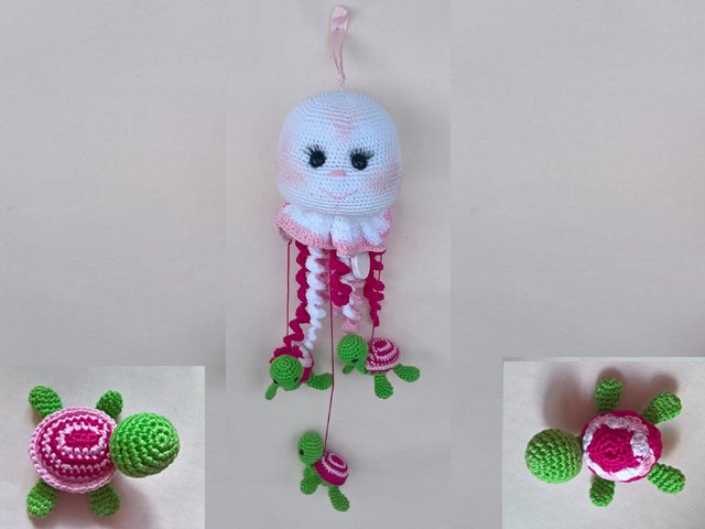 Für die Qualle findet sich auch ganz rasch ein Knäuel. Ob mit oder ohne Spieluhr - lustig schaut sie immer aus.