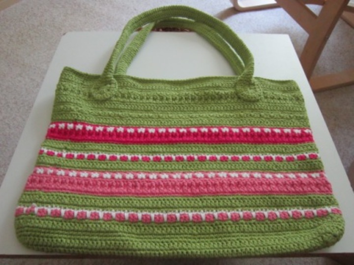 Die Tasche ist bei mir ca. 42 x 34 cm groß (ohne Henkel)