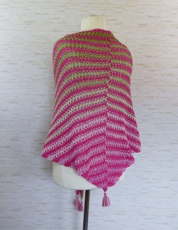 Das abgebildete Dreieckstuch hat eine Länge von ca. 200 cm / Höhe ca. 65 cm. Die Größe kann jedoch selbst bestimmt werden.