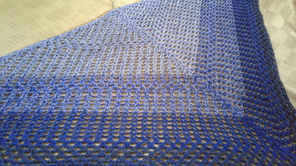Gebraucht werden Wolle, Cake, Wirl, oder Reste, das Tuch kann in jeder Größe gearbeitet werden es endet wenn die Wolle alle ist.