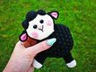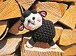Wolle: Ich habe mit Mondial bio soft cotton (50g 180m) gehäkelt, dieses Garn besteht zu 100% aus bio Baumwolle und ist bestens für Babyspielzeug geeignet, du brauchst ca. 50 g in deiner Wunschfarbe (hier schwarz) für den Grundkörper, Reste in einer Kontrastfarbe 1 für Bäckchen und Ohren (hier rosa). Reste in Kontrastfarbe 2 für die Beine und das Gesicht (hier natur).
