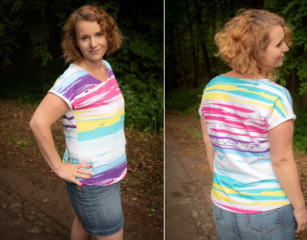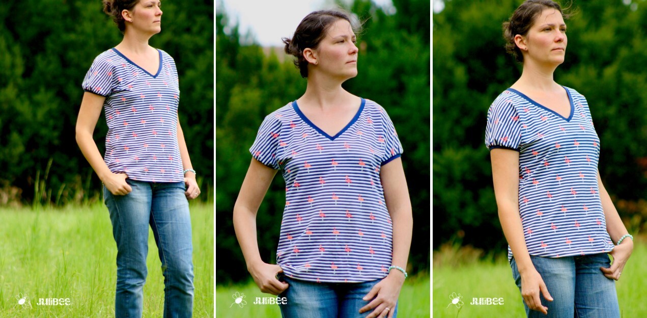 Ein leicht Tailliert und locker fallendes Sommershirt für Damen. Es hat keine eingesetzten Ärmel und ist somit ganz fix genäht.