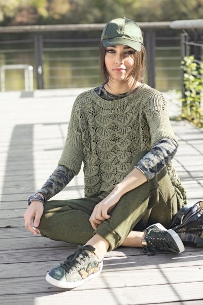 Von Seide lassen wir uns gern umgarnen. Das Besondere an dem schilfgrünen Strickshirt ist das Dochtgarn, dessen Hülle aus feinster Maulbeerseide mit einer Baumwollfüllung versehen ist – toll für Muster aller Arten!