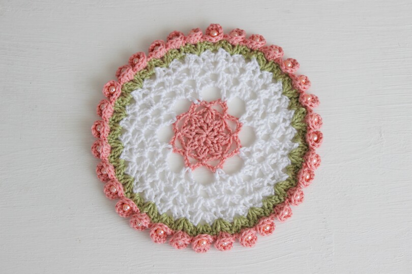 Häkelanleitung für ein wunderschönes Häkeldeckchen (18 cm Durchmesser) gehäkelt aus festen Maschen und Stäbchen. Sehr süß in Kombi mit dem Rosenblüten-Teelicht (siehe Shop). Viel Spaß beim Nacharbeiten ....