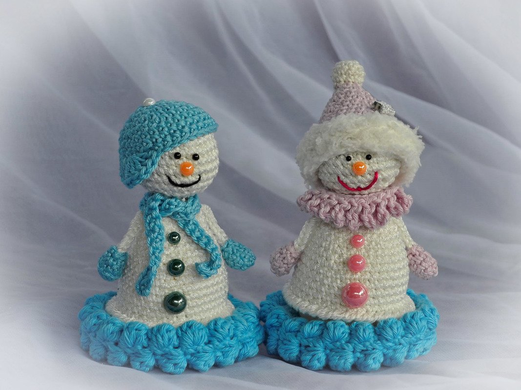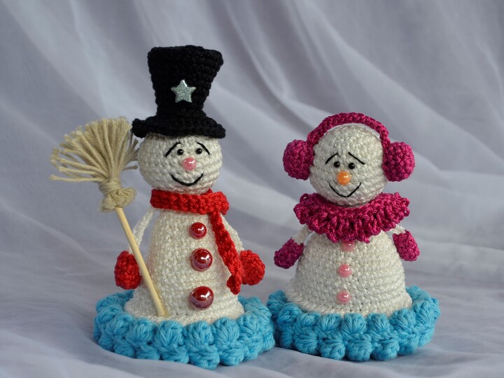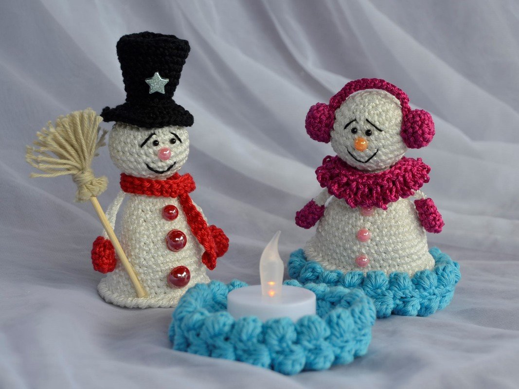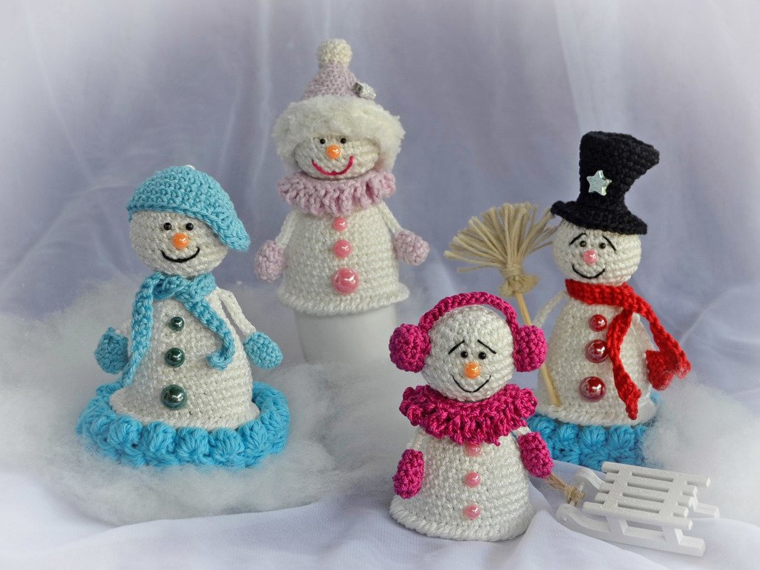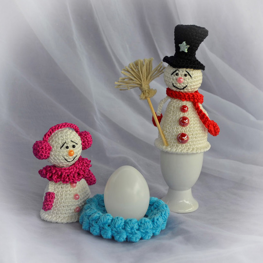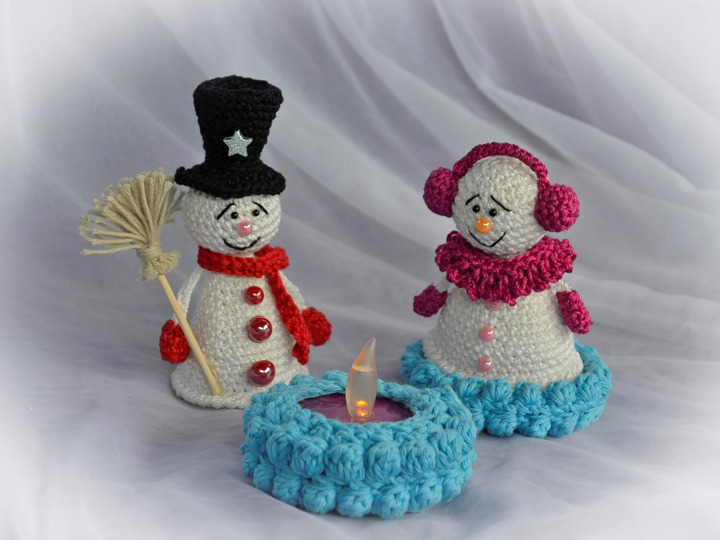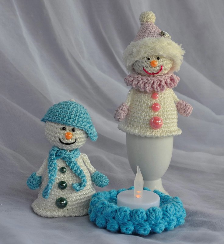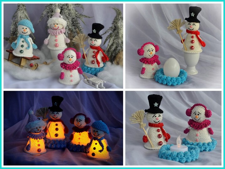 Häkelanleitung Familie Schneemann, auch als beleuchtete Tischdeko oder Eierwärmer