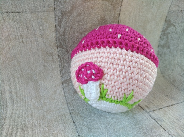 Der Ball wird ca. 8 - 9 cm im Durchmesser.