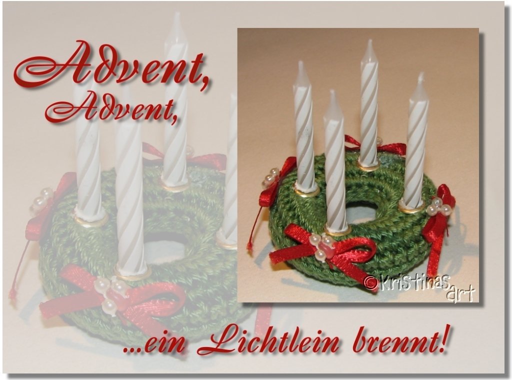 Ein kleiner gehäkelter Adventskranz für die Puppenstube, als Mitbringsel im Advent oder einfach so als Deko. Mit der detailliert bebilderten Häkelanleitung ist es gar nicht schwer, ihn zu häkeln.