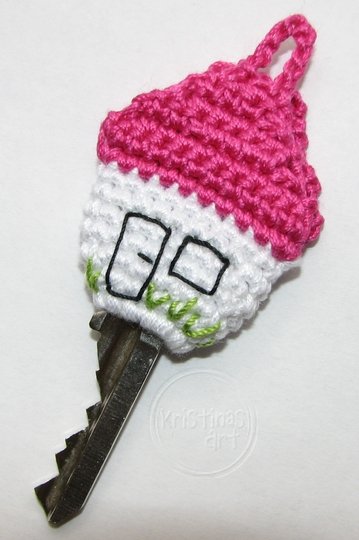 Du erwirbst mit dem Kauf die unbebilderte Anleitung zum Häkeln des Hauskeycaps. Das Keycap wird gehäkelt und dann über den Schlüssel gezogen.